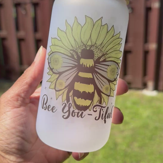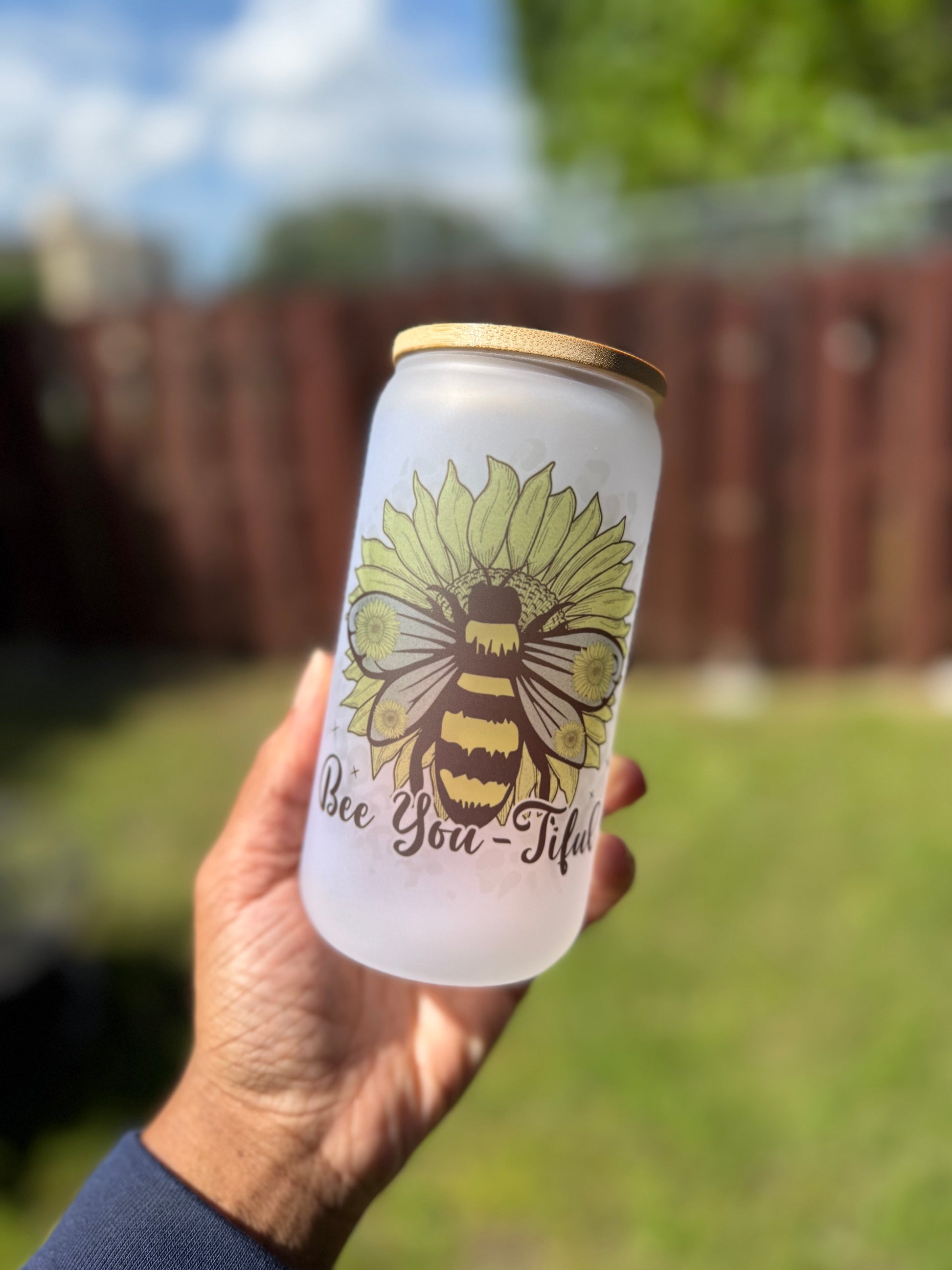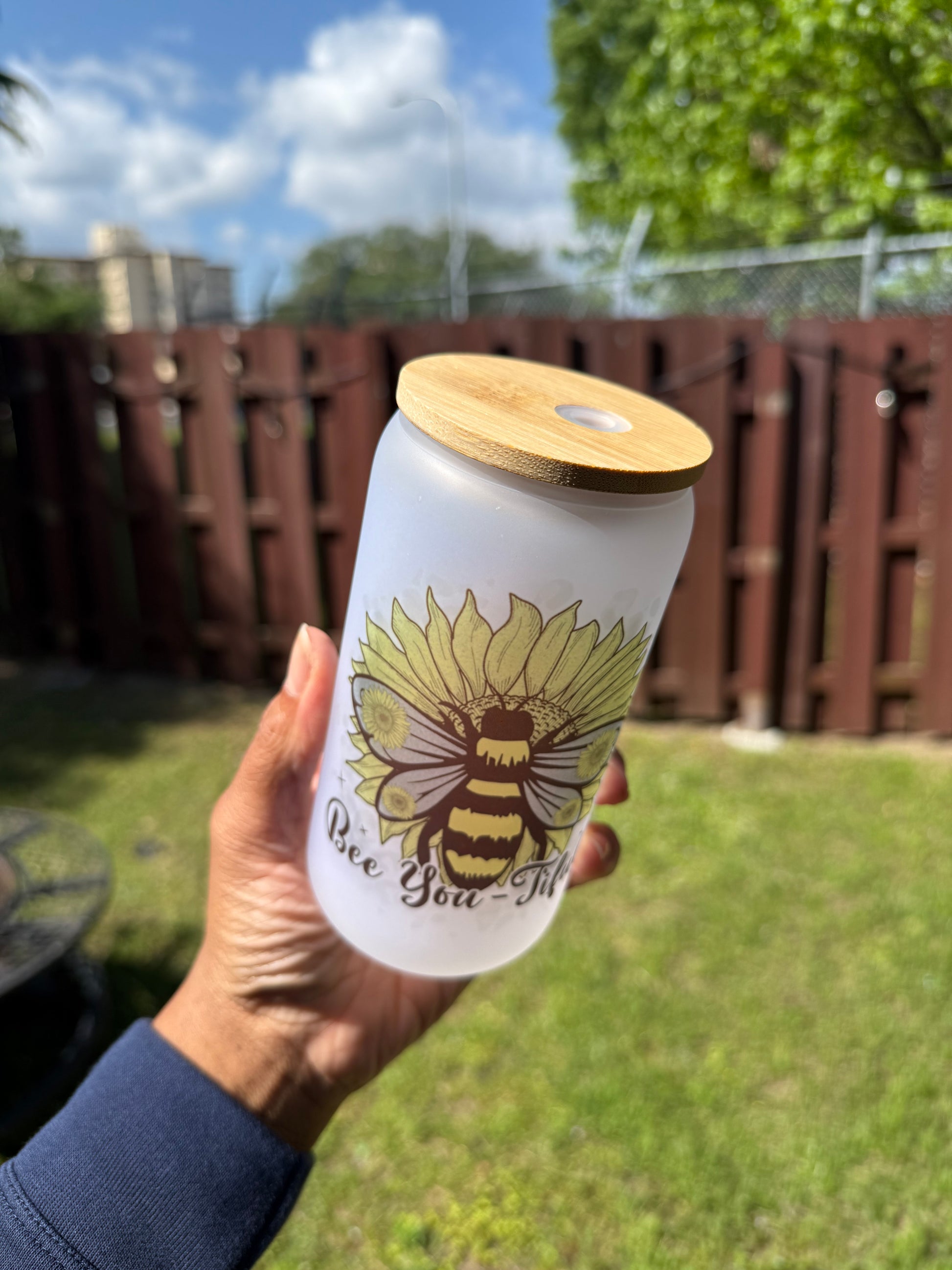 Feel the joy of spring & summer with the BeeYouTiful JAR! This beautiful 16oz frosted mason jar comes with a bamboo lid, perfect for enjoying your favorite summer drinks. It comes with a metal straw, straw cleaner to brighten up your day. What are you waiting for? Show your BeeYouTy with flavor today!