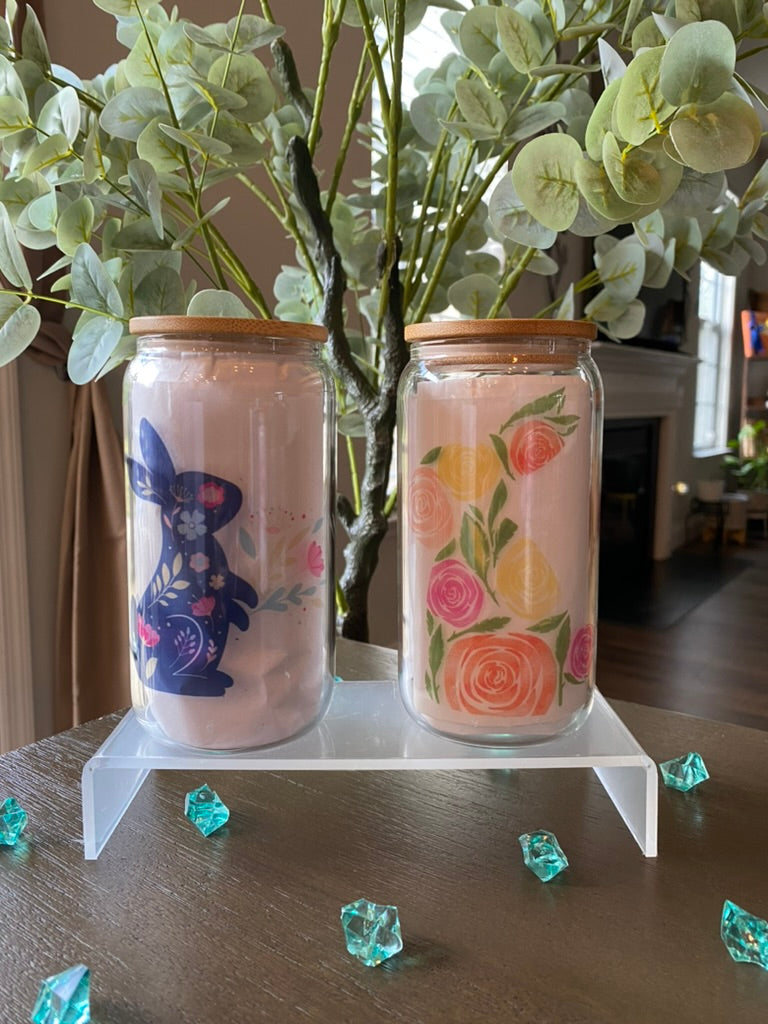 Discover the perfect springtime gift with Bunny Jars! Enjoy the Easter season in style with this 16oz mason jar, matching bamboo lid, and included metal straw and straw cleaner. With cheerful bunnies and vibrant floral prints, you'll be delighted to sip your favorite beverage in this festive and functional cup. Why wait? Add some cheer to your Easter & Spring with Bunny Jars!