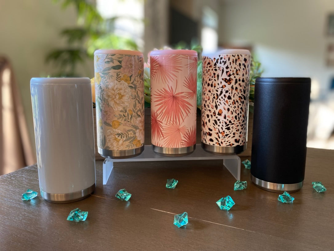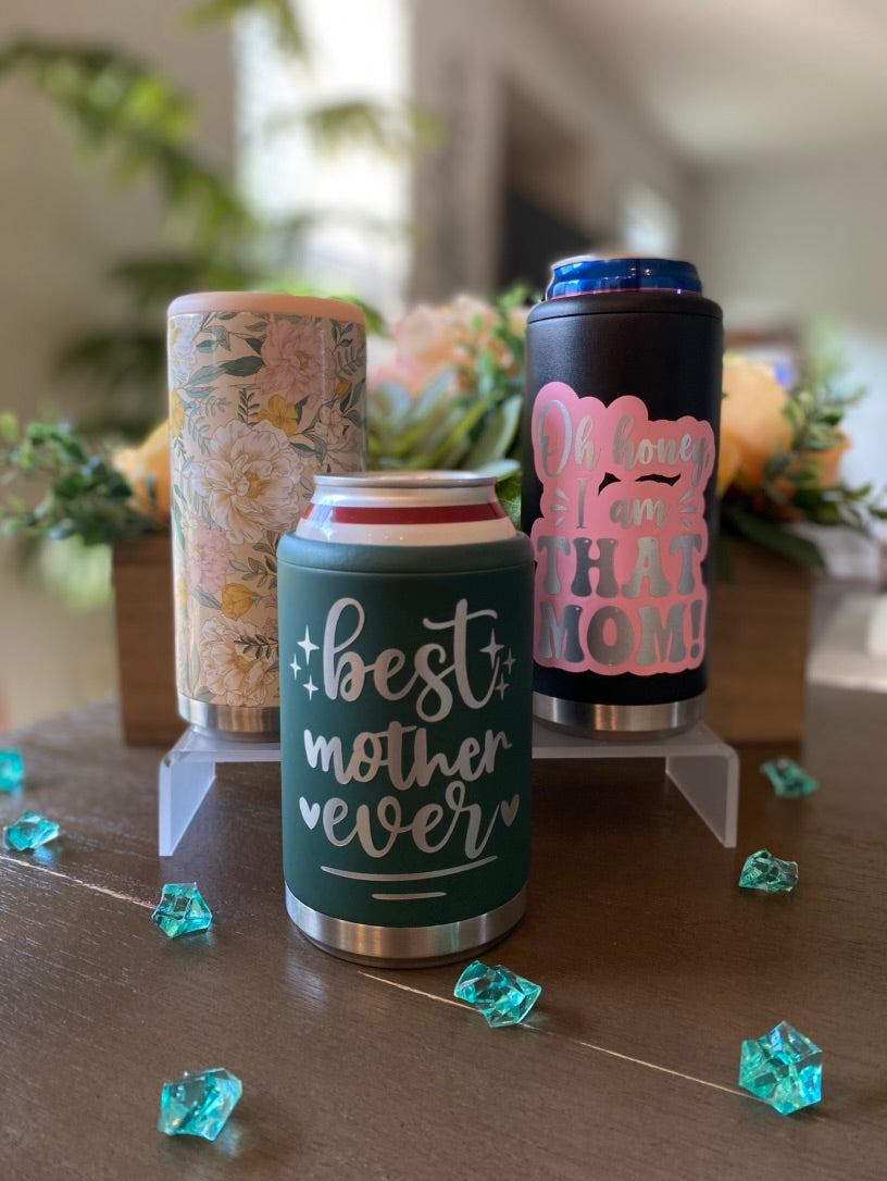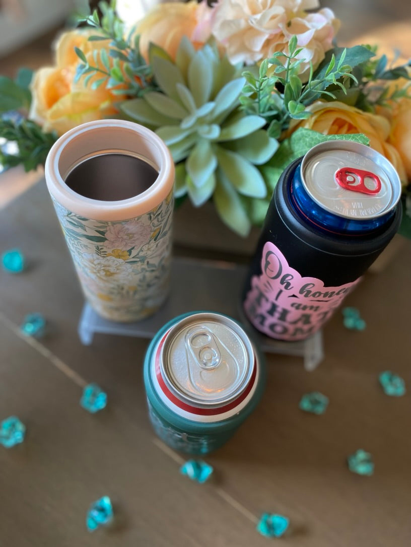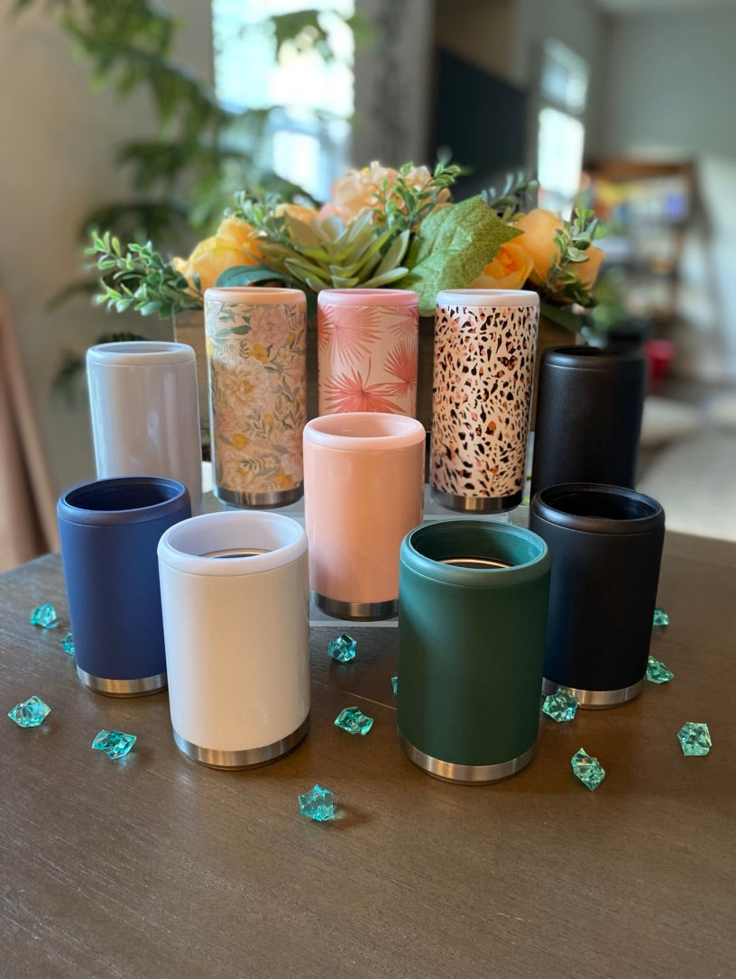 Beat the summer heat with these stylish stainless steel Can Coolers! Perfect for the beach, its snug fit is compatible with both 12oz skinny and standard cans, so you can enjoy your favorite beverages in style. Customize your Can Cooler for a unique touch!