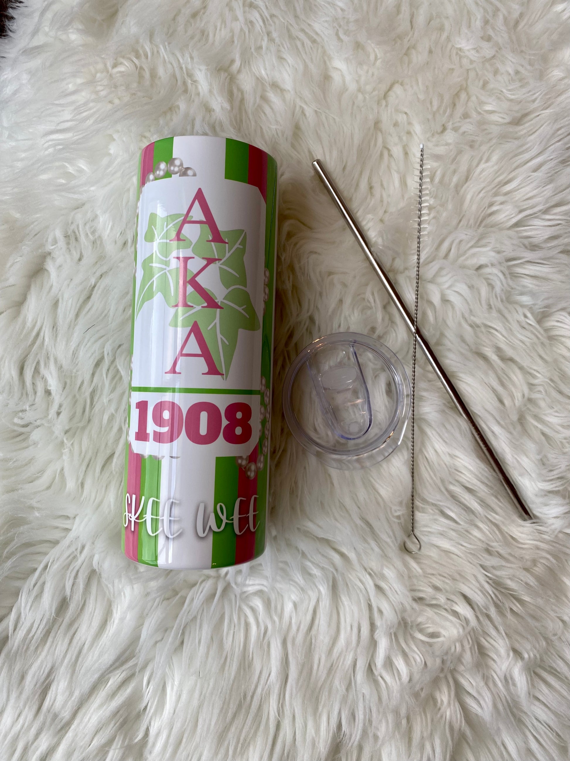 Stay hydrated in style with the SOROR tumbler! Crafted from stainless steel and part of our DIVINE Collection, this stylish 20oz tumbler features a metal straw, straw cleaner in both the Classic and Customizable options. Enjoy the convenience of sipping your favorite drinks with the perfect sorority paraphernalia!