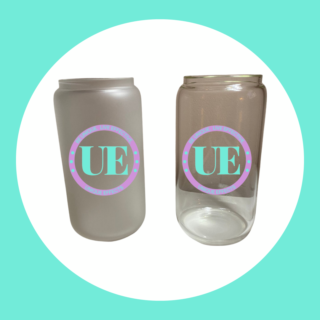 Enjoy your favorite beverage in style with UE's custom glass can! Personalize a 16oz Frosted or Clear can for the perfect look. Both styles come with metal and plastic straws and a cleaner to keep your glass looking great. Enjoy the perfect mix of convenience and customization with UE's custom glass can!